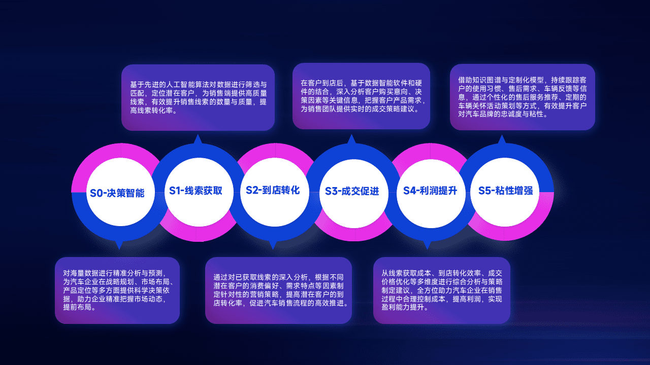 通过拓宽潜在客户来源、、、、优化线索分配并提高到店转化率,,,以增强销售效率。。同时,,利用线索数据不断优化分析模型,,,有效提升转化率,,,扩大营销影响力。。